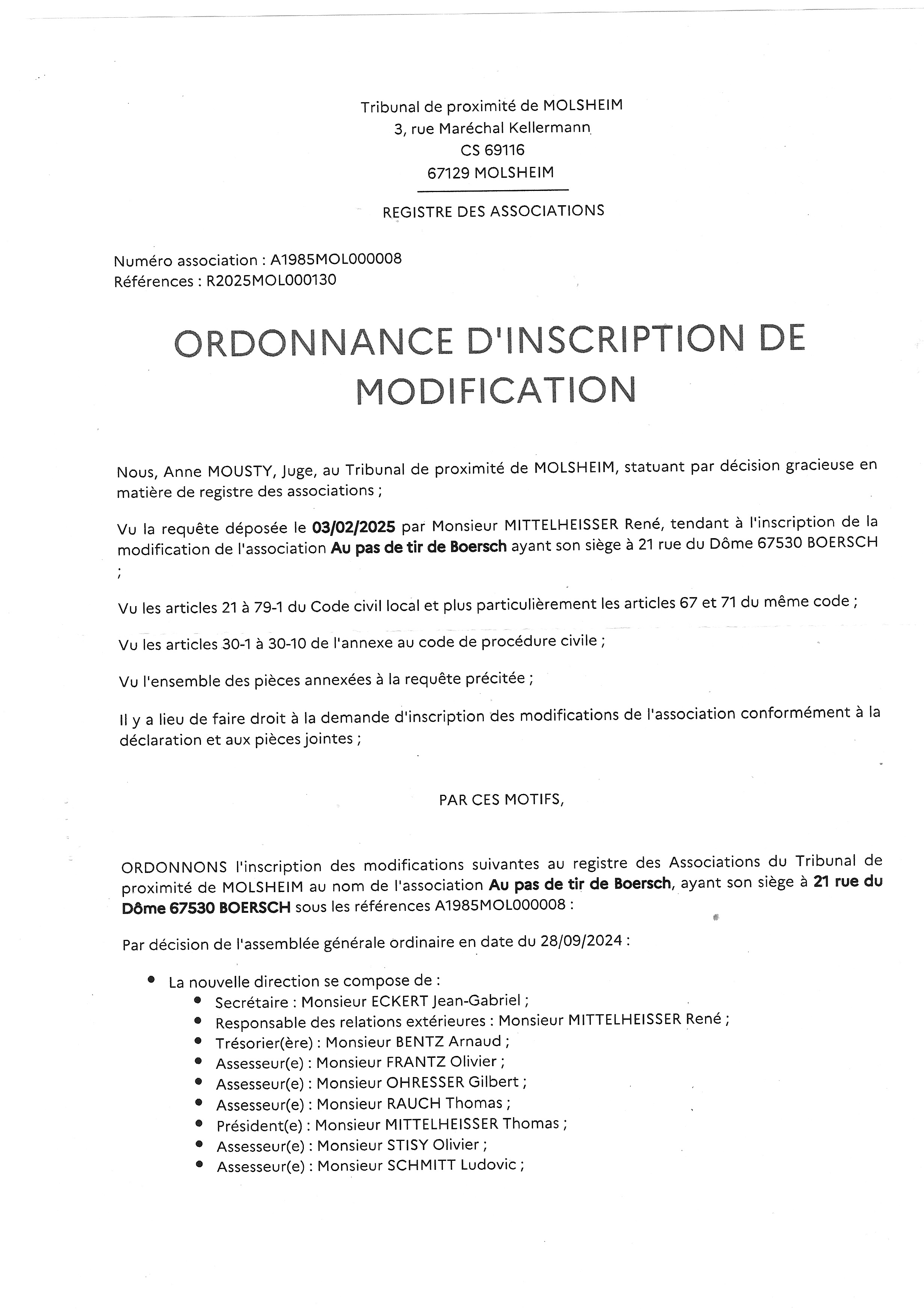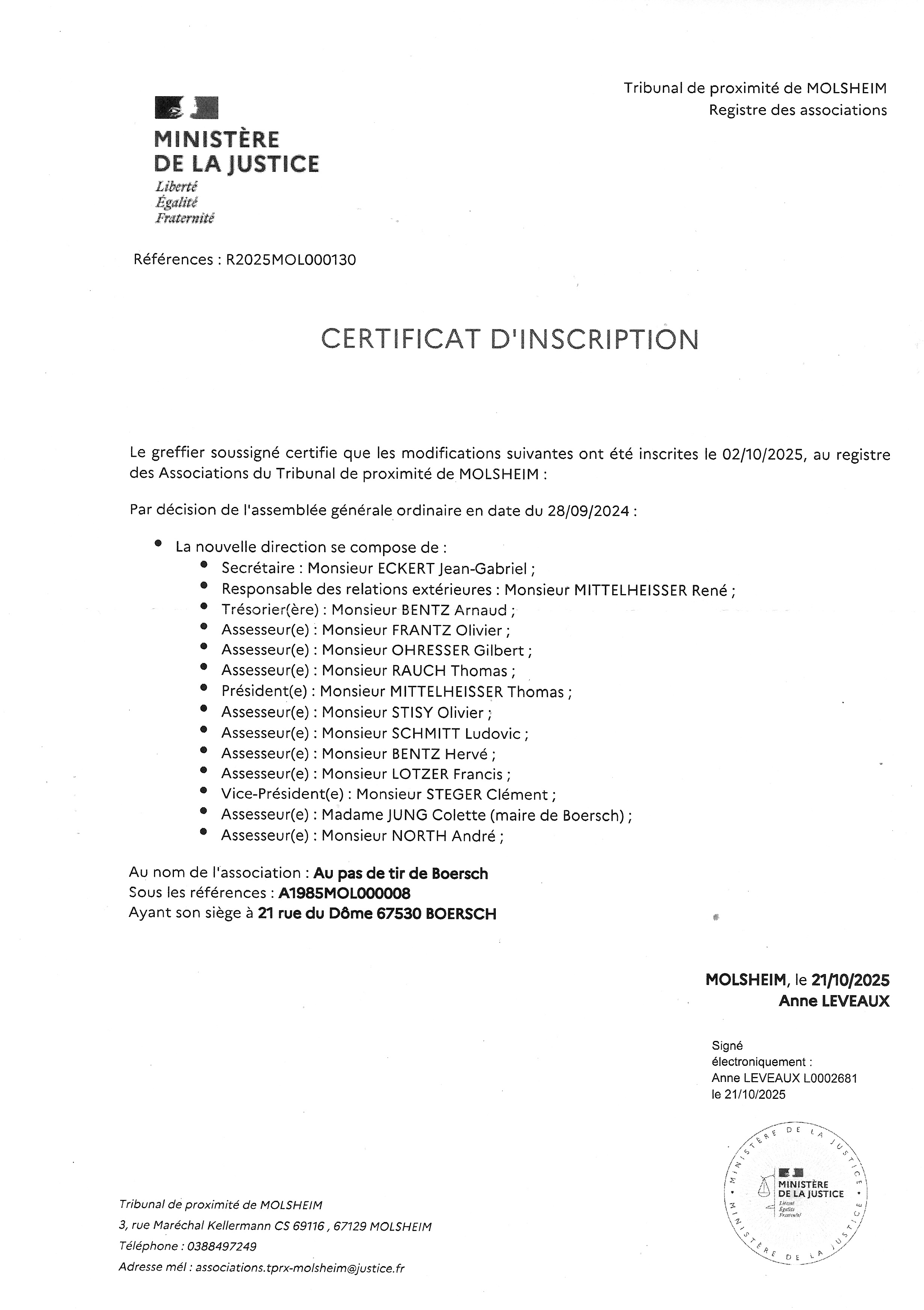 Depuis la saison 2018-2019, le Pas de tir de Boersch n'est plus affilié à la Fédération Française de Ball Trap (FFBT)